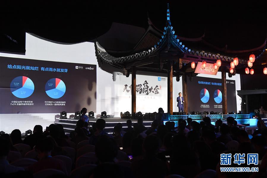 10月29日,蚂蚁金服董事长兼首席执行官井贤栋在首届天下码商大会上致辞。 10月28日至30日,由福州市政府联合支付宝主办的首届天下码商大会在福建福州举行。 新华社记者 姜克红 摄
