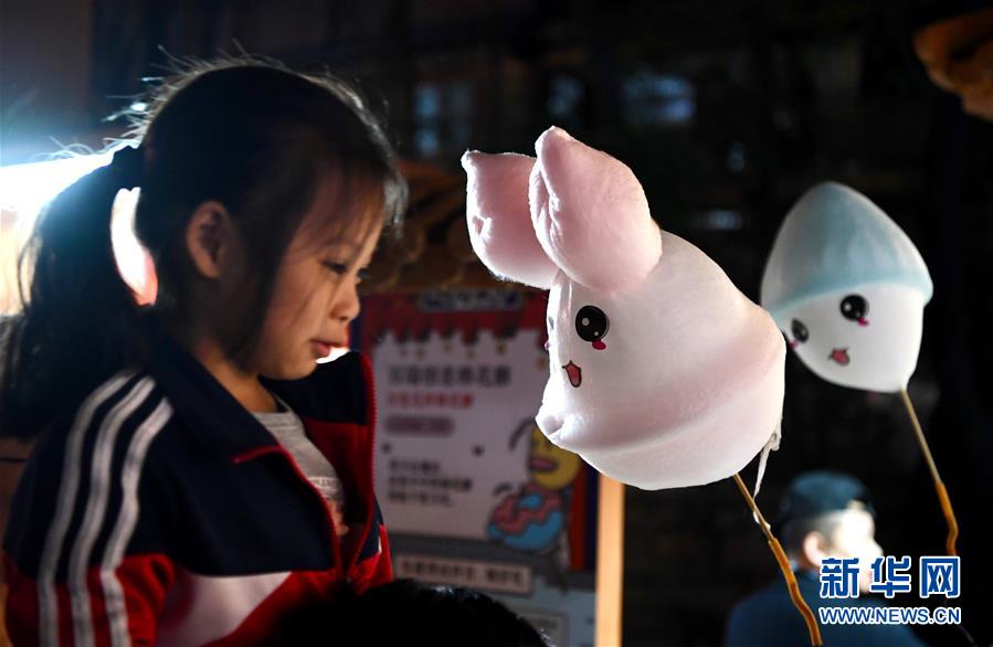 10月29日,在首届天下码商大会码商集市上,一名小女孩在观看创意棉花糖制作。 10月28日至30日,由福州市政府联合支付宝主办的首届天下码商大会在福建福州举行。 新华社记者 姜克红 摄