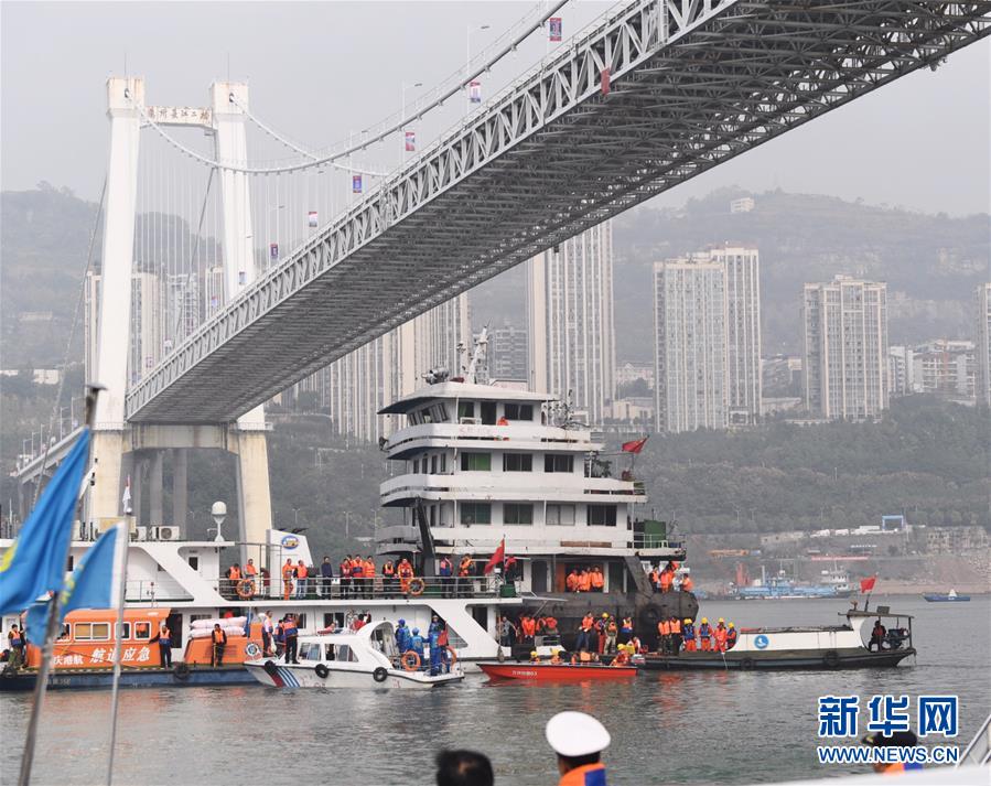 重庆万州坠江公交车打捞深潜设备到位 潜水员正下潜勘测