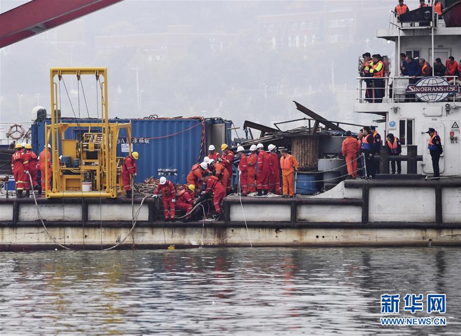 重庆万州坠江公交车打捞深潜设备到位 潜水员正下潜勘测