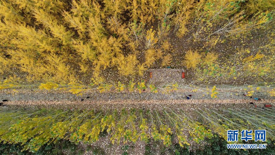 宁夏银川市凤凰公园秋景(10月20日无人机拍摄)。