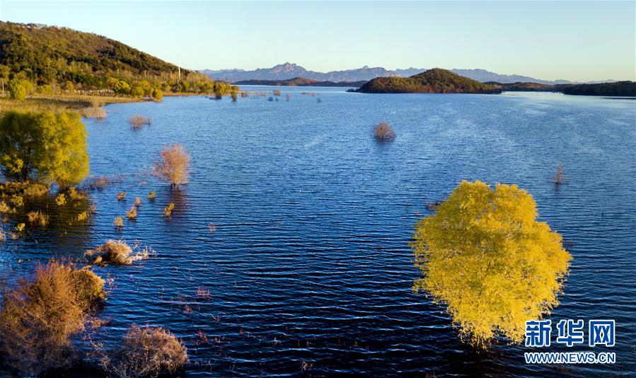 金秋时节,北京密云水库沿岸树林逐渐变黄,山水相映,恬淡宁静。 新华社记者李欣摄