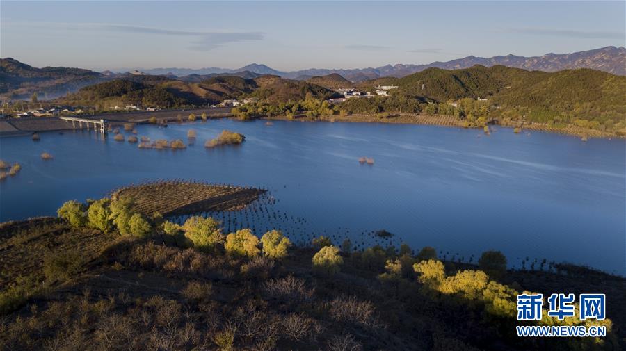 金秋时节,北京密云水库沿岸树林逐渐变黄,山水相映,恬淡宁静。 新华社记者陶明摄