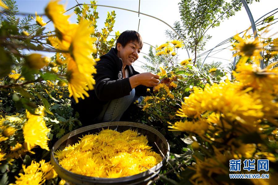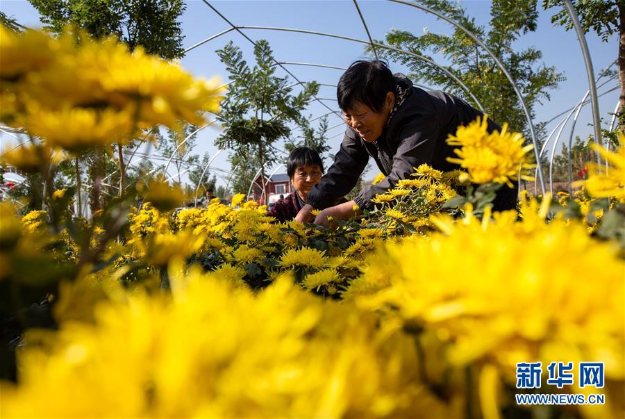 10月30日,武安市午汲镇东河下村村民在采摘菊花。 新华社记者 王晓 摄