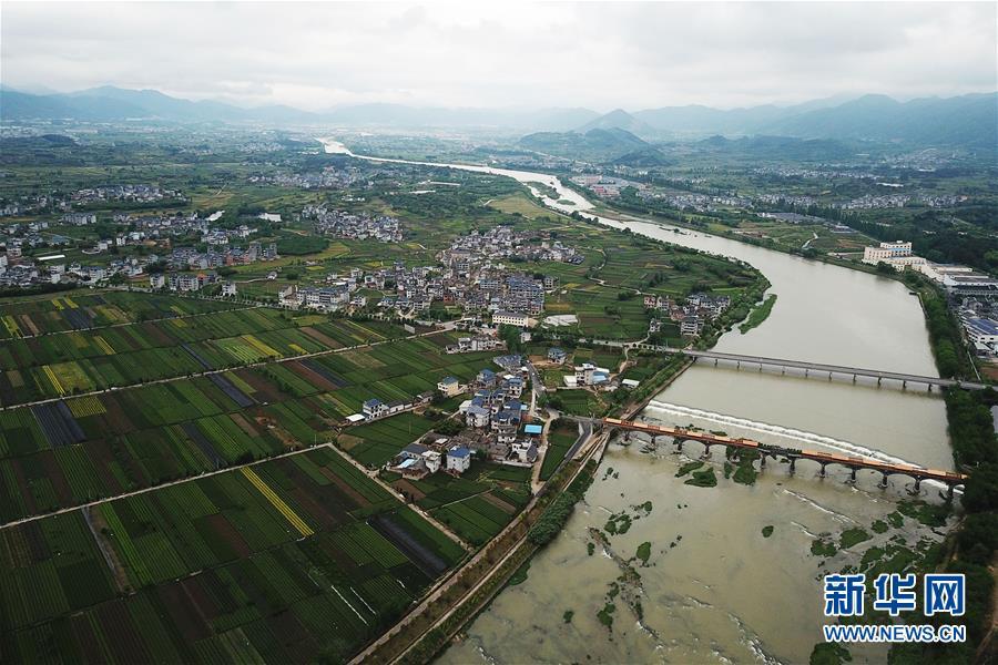 这是2018年4月24日航拍的浙江松阳县斋坛乡石门圩村及松阴溪景区。松阴溪景区以沿线优美的山水环境、农业景观为核心载体,通过滨水绿道,串点成线打造集农业观光、农耕体验、滨水休闲、生态科普等于一体的江南农耕文化活态公园。新华社记者 黄宗治 摄