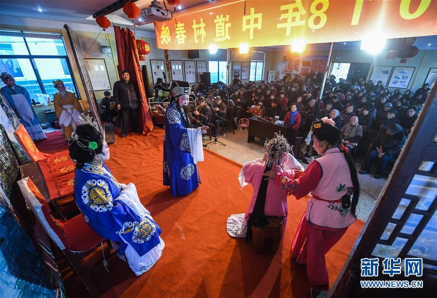 2018年2月6日,长兴风华艺术团的演员们为洪桥镇中道村的村民们演出越剧。据了解,长兴县每年都会安排100多场“送戏下乡”活动,满足村民的精神文化需求。新华社记者 徐昱 摄
