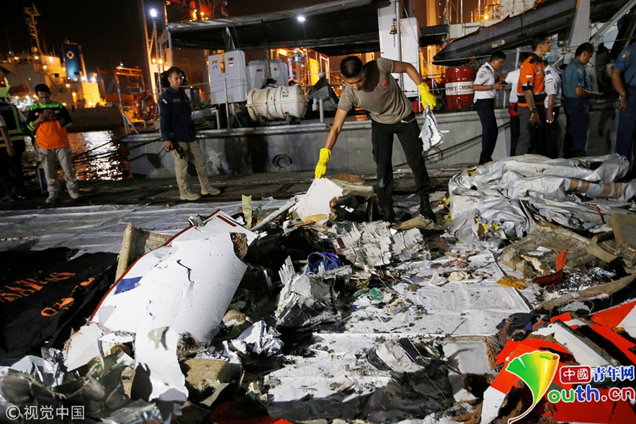 印尼继续打捞狮航坠机残骸和遗体 遇难者遗物摆满一地