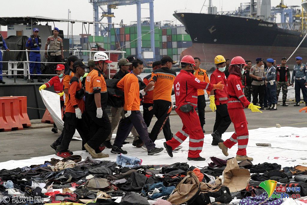 印尼继续打捞狮航坠机残骸和遗体 遇难者遗物摆满一地