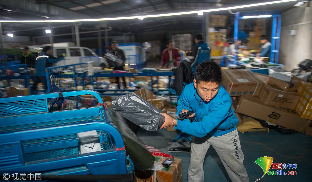 云南省昆明市,摄影师实拍90后快递员熊忠桃的一天工作。作为一名快递员,他25岁就买了房。图片作者:锐图