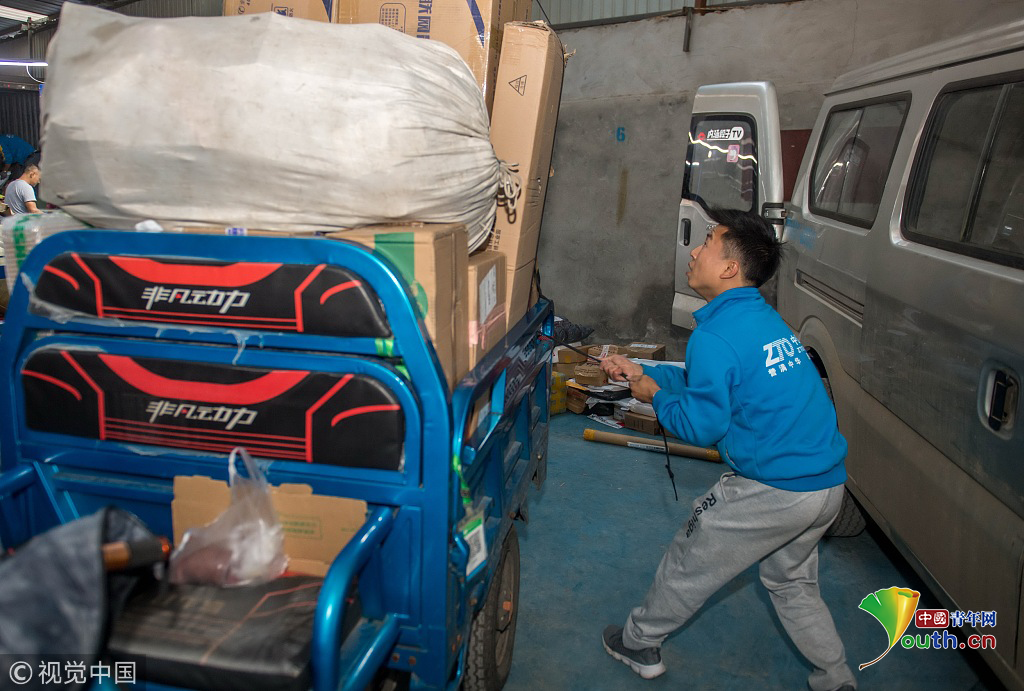 摄影师实拍90后快递员熊忠桃的一天工作。作为一名快递员,他25岁就买了房,9月份收入3万多。图片作者:锐图