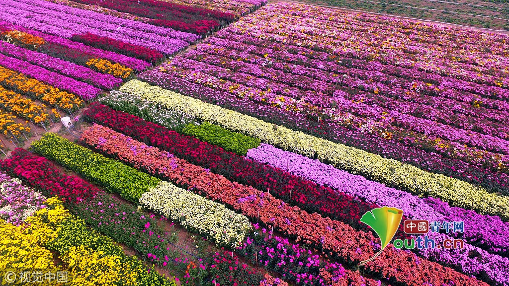 河南许昌观赏彩菊绽放如五彩地毯 航拍展现震撼美