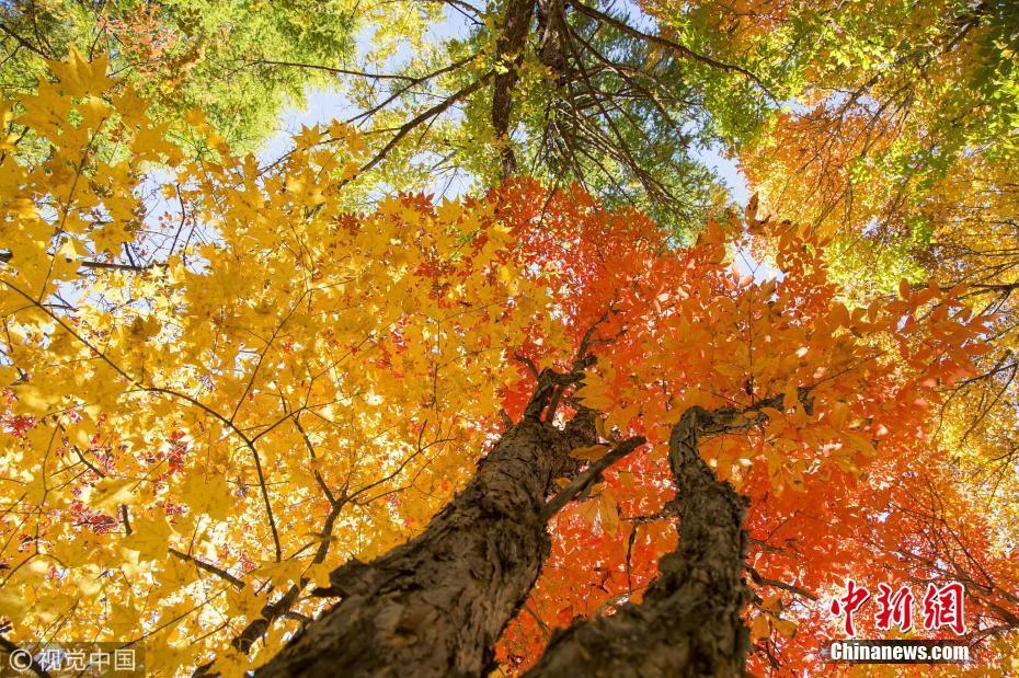 平分秋色! 山东济南楔子山现“一山双色”景观