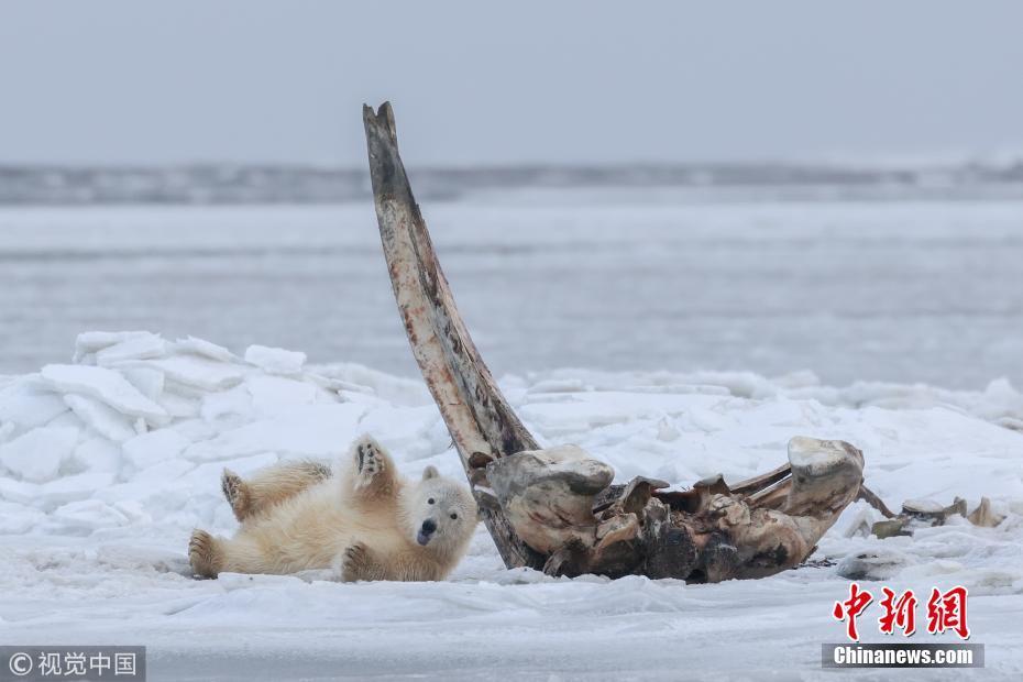 11月1日讯(具体拍摄时间不详),美国阿拉斯加州,一只北极熊妈妈带着幼崽们外出觅食,发现了一节长4.5米的北极露脊鲸骸骨。75吨重的鲸鱼对因纽皮亚特人来说是神圣的,他们每年要吃三次鲸鱼,把骨头放在指定的地方,让北极熊吃完粘在骨头上的碎肉。摄影师Eiji Itoyama为拍摄此照片在位于北冰洋边缘的阿拉斯加卡克托维克村停留了5天。图片来源:视觉中国