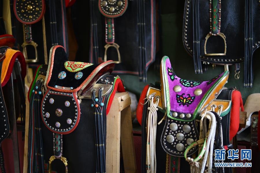 这是10月30日在内蒙古自治区通辽市科尔沁左翼后旗拍摄的套格敦白乙制作的马鞍。新华社记者邹予摄