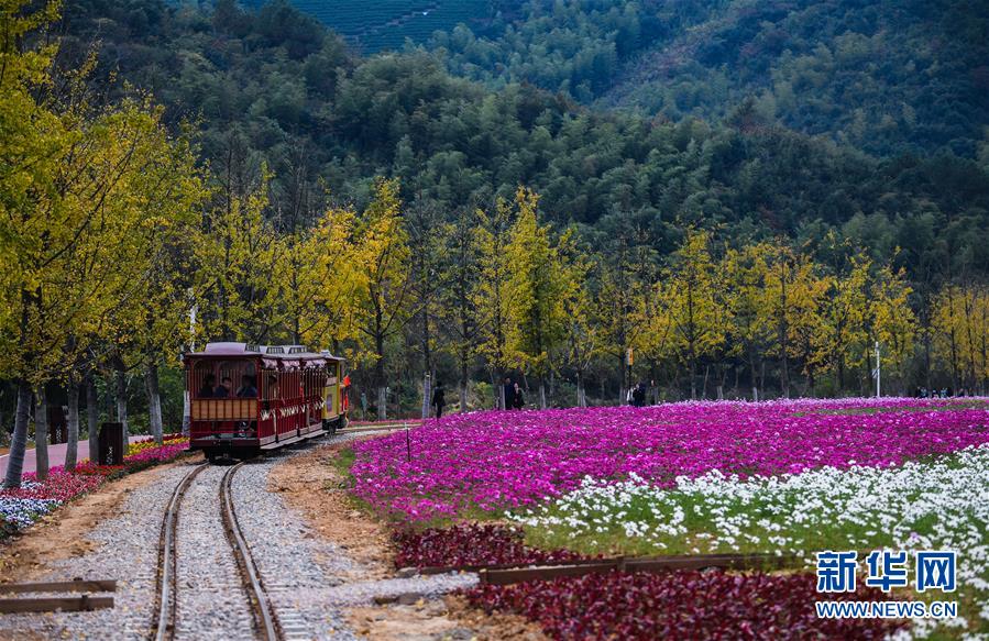 11月2日,金黄的银杏林与“五彩花海”构成了美丽秋色。 新华社记者 徐昱 摄