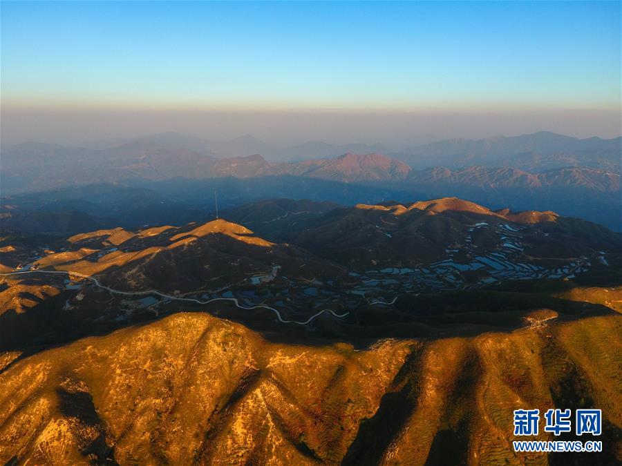 夕阳下的摩天岭草场(11月2日无人机拍摄)。金秋时节,广西融水苗族自治县杆洞乡尧告村的摩天岭草场天高云淡,景色迷人。新华社记者周华摄