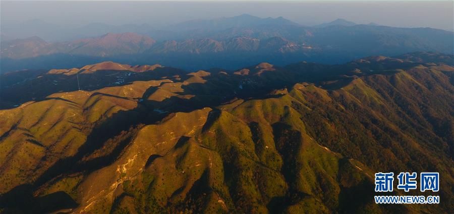 夕阳下的摩天岭草场(11月2日无人机拍摄)。金秋时节,广西融水苗族自治县杆洞乡尧告村的摩天岭草场天高云淡,景色迷人。新华社记者周华摄