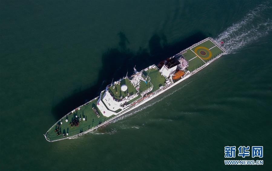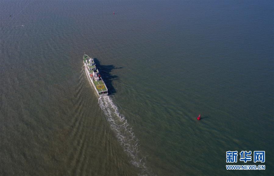 11月3日,“海巡21”轮驶出港口(无人机拍摄)。当日,随着“海巡21”轮缓缓驶离海口海事监管基地码头,由琼桂粤海事部门共同开展的琼州海峡、北部湾及环海南岛水域跨辖区联合巡航执法活动揭开序幕。新华社记者杨冠宇摄
