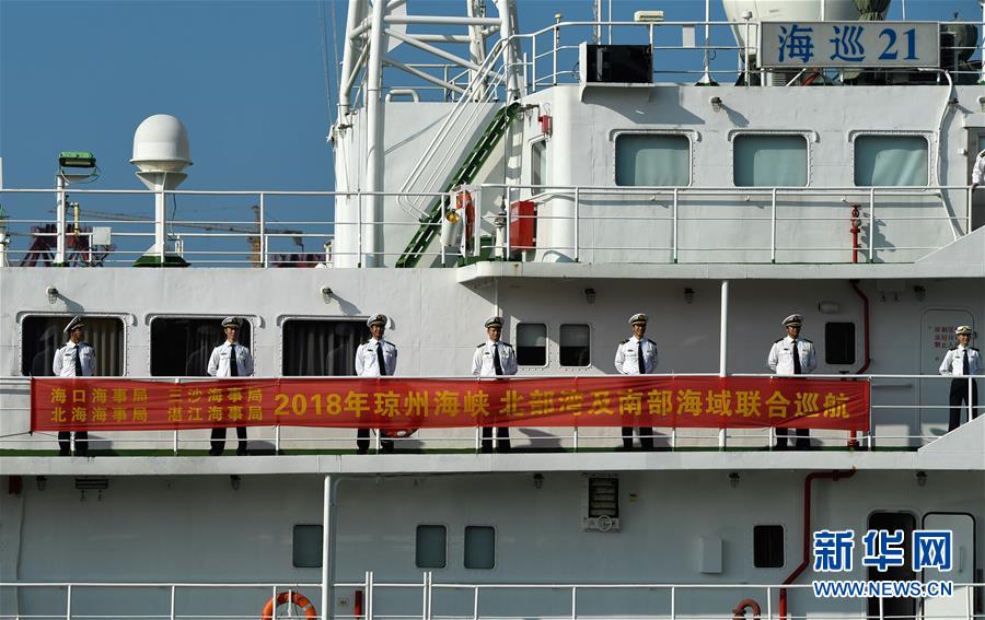 11月3日,“海巡21”轮驶出港口。当日,随着“海巡21”轮缓缓驶离海口海事监管基地码头,由琼桂粤海事部门共同开展的琼州海峡、北部湾及环海南岛水域跨辖区联合巡航执法活动揭开序幕。新华社记者杨冠宇摄