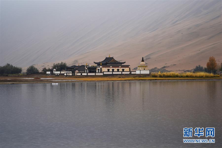 位于沙漠腹地的巴丹吉林庙(10月19日摄)。巴丹吉林沙漠位于内蒙古西部阿拉善盟,是中国第三大沙漠,沙丘起伏的曲线陡变成高耸的沙山,碧蓝的湖泊散落在沙海间。新华社记者李仁虎摄