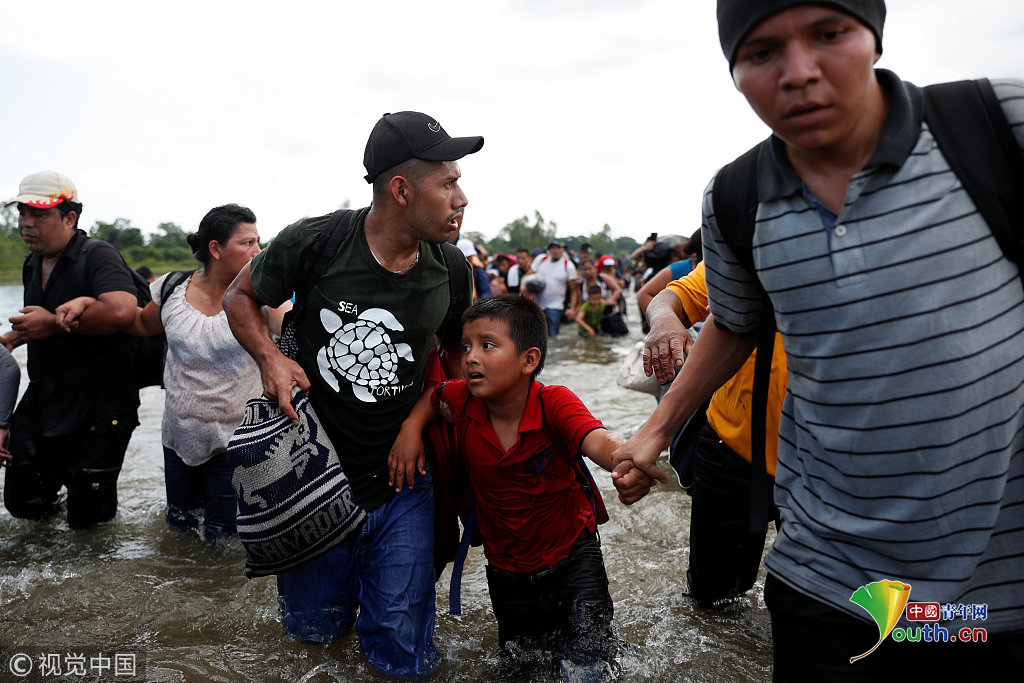 当地时间2018年11月2日,墨西哥与危地马拉边界,中美洲移民继续向美国挺进。图片作者:CARLOS GARCIA RAWLINS