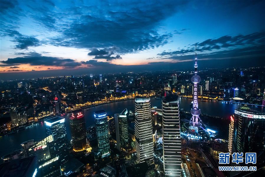 这是11月3日傍晚时分拍摄的的上海陆家嘴和外滩夜景。 首届中国国际进口博览会即将在上海开幕。美丽的上海张开怀抱,迎接八方来客。 新华社记者 李鑫 摄