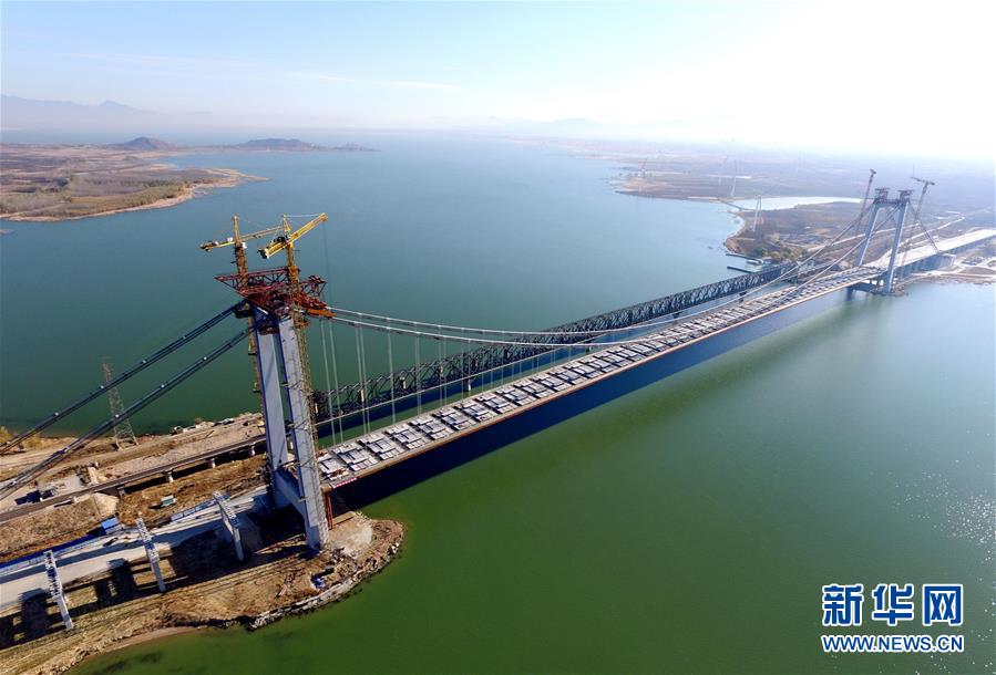 这是主桥成功合龙的河北怀来官厅水库公路大桥(10月30日无人机拍摄)。新华社记者杨世尧摄