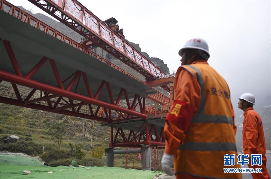 11月3日,工人在克枯大桥合龙现场工作。 当日,位于四川省阿坝藏族羌族自治州的汶(川)马(尔康)高速的控制性工程克枯大桥合龙。 新华社记者 刘坤 摄