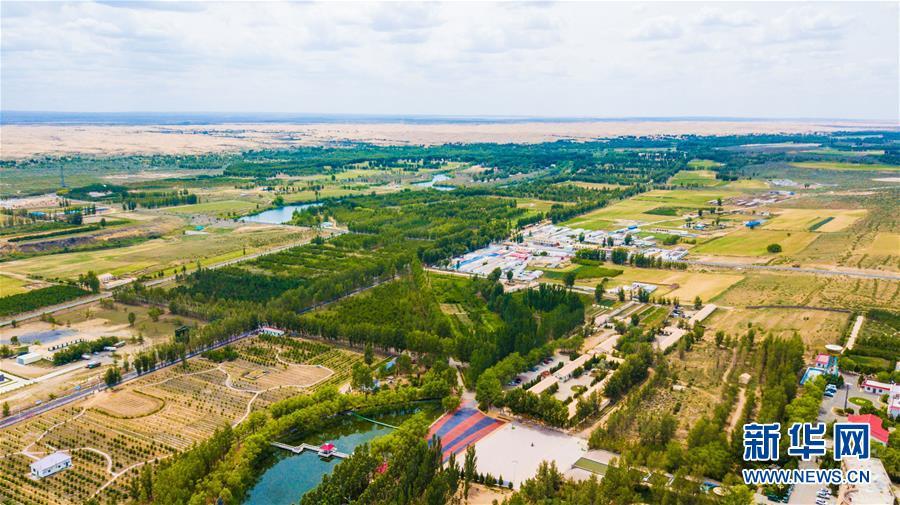 内蒙古鄂尔多斯市恩格贝生态旅游区(6月8日无人机拍摄)。 新华社记者彭源摄