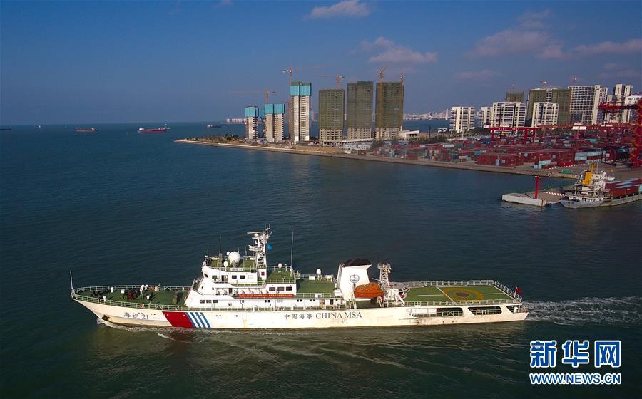 11月3日,“海巡21”轮驶出港口。 当日,随着“海巡21”轮缓缓驶离海口海事监管基地码头,由琼桂粤海事部门共同开展的琼州海峡、北部湾及环海南岛水域跨辖区联合巡航执法活动揭开序幕。 新华社记者杨冠宇摄