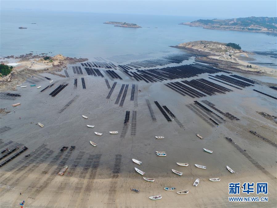近日,福建省莆田市湄洲湾北岸蒋山村的2000多亩种植紫菜进入收割旺季,当地村民抢收头水紫菜。蒋山村现有200多家紫菜种植户,紫菜种植成为当地村民增收致富的主要产业。