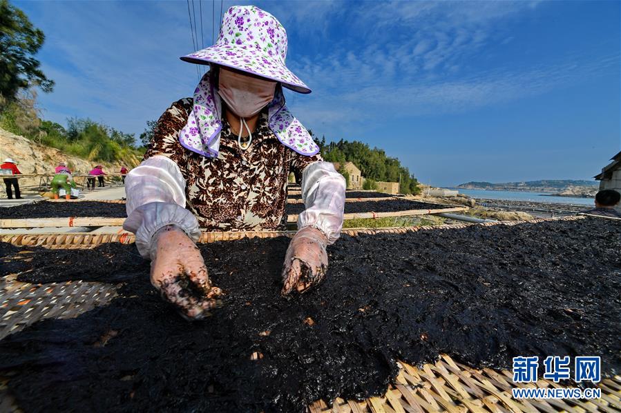 10月24日,福建莆田蒋山村村民在晒紫菜。 新华社记者张国俊 摄