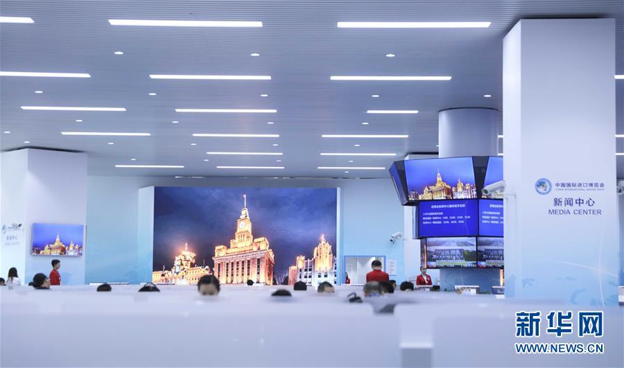 这是11月4日拍摄的首届中国国际进口博览会新闻中心媒体公共工作区一角。 新华社记者兰红光摄