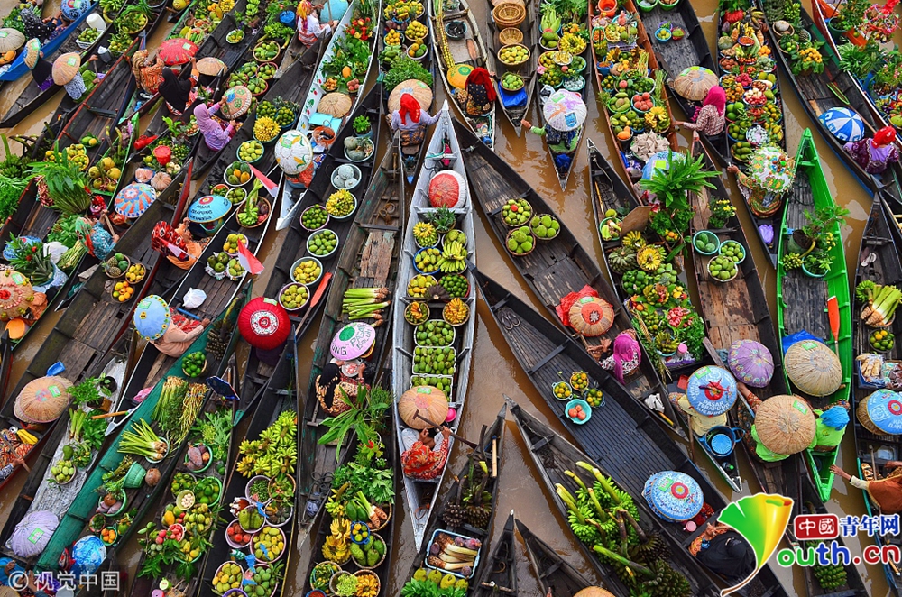 2018年11月5日讯(具体拍摄时间不详),印度尼西亚班加尔地区,专业摄影师Saipullah拍摄的洛克班坦(Lok Baintan)水上集市。 图片来源:视觉中国