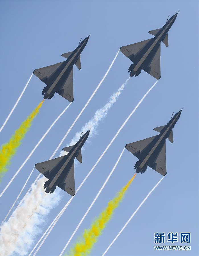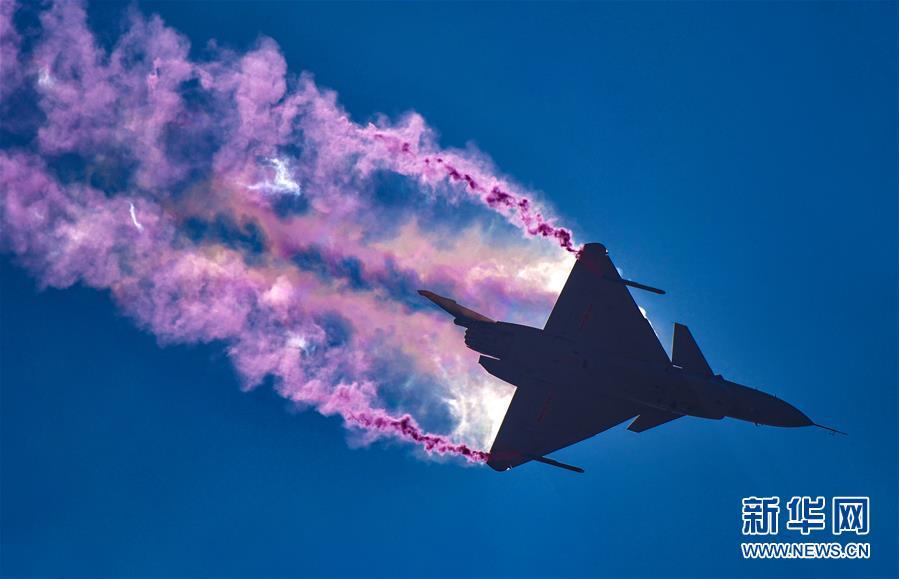 11月6日,歼-10B在飞行表演中。 新华社记者杨光摄