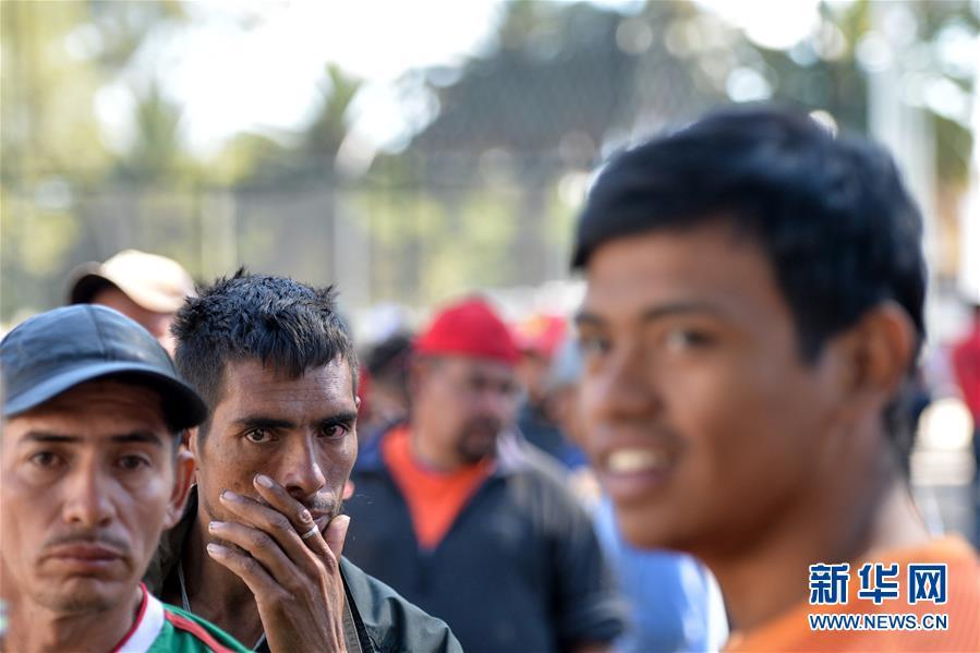 11月5日,在墨西哥首都墨西哥城,中美洲移民在临时安置点外排队。新华社记者辛悦卫 摄