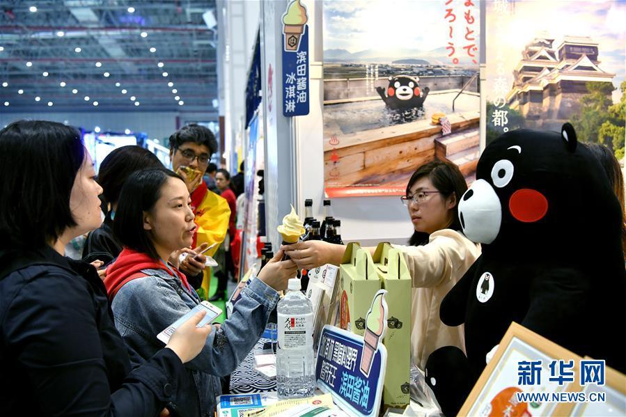 11月7日,观众在日本滨田酱油株式会社展台品尝酱油冰淇淋。 新华社记者 李鑫 摄