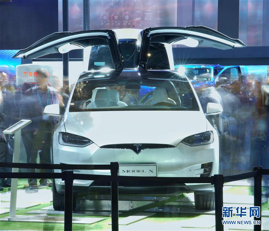 11月7日,观众在特斯拉展位参观MODEL X汽车。