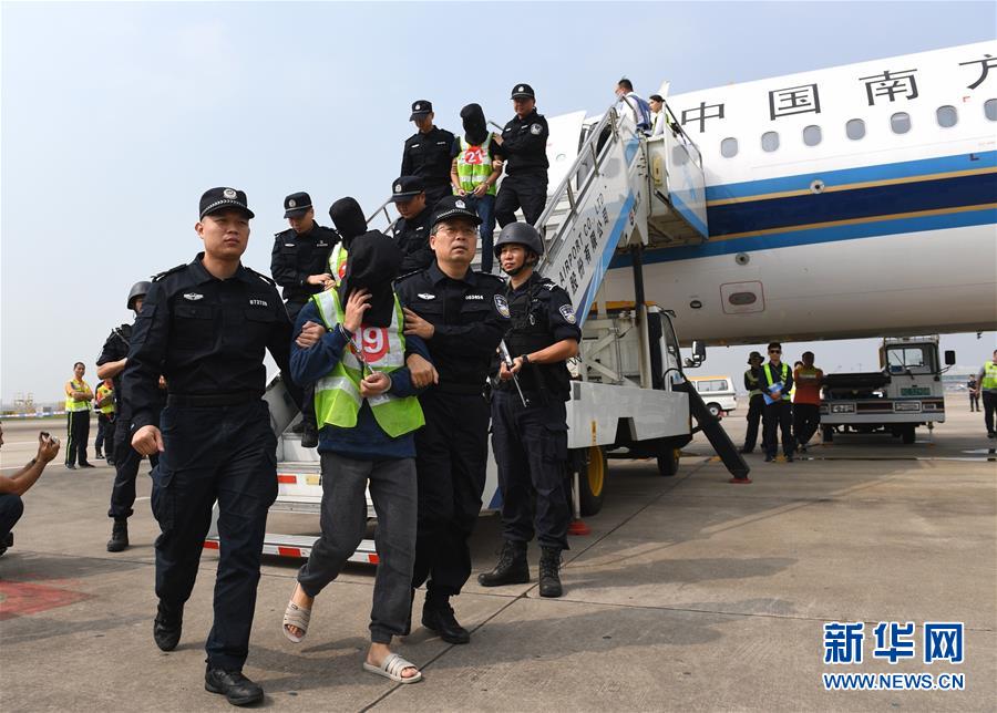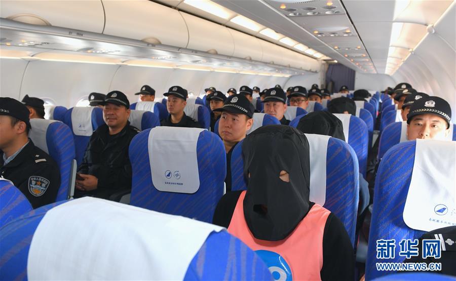 11月7日,涉及到吉林部分网络诈骗案件的14名犯罪嫌疑人继续乘坐包机被押解回吉林接受处理。新华社记者毛思倩摄