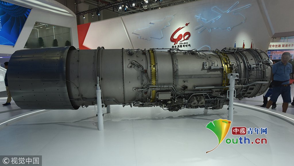 观众在观看国产新型涡扇发动机“太行发动机”。