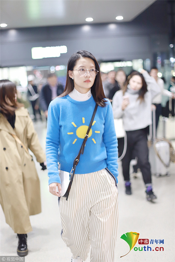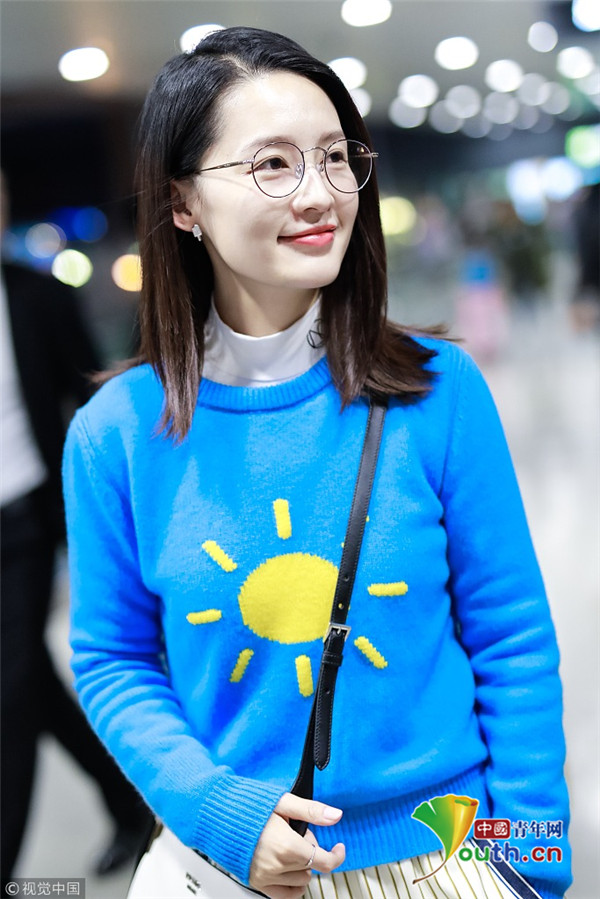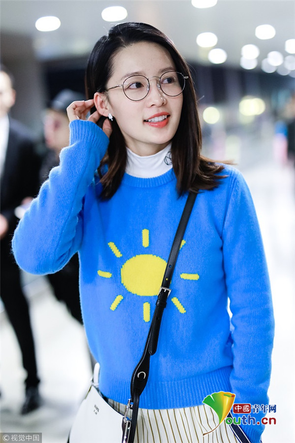 2018年11月8日,上海,李沁现身机场。李沁蓝毛衣清新亮眼白到发光,通透淡妆凸显干净气质美腻动人。