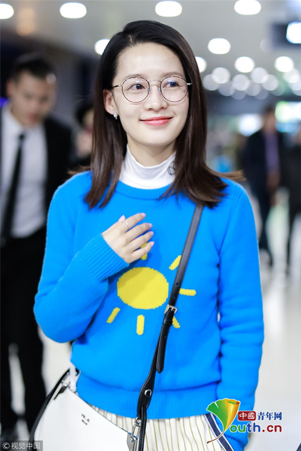 2018年11月8日,上海,李沁现身机场。李沁蓝毛衣清新亮眼白到发光,通透淡妆凸显干净气质美腻动人。