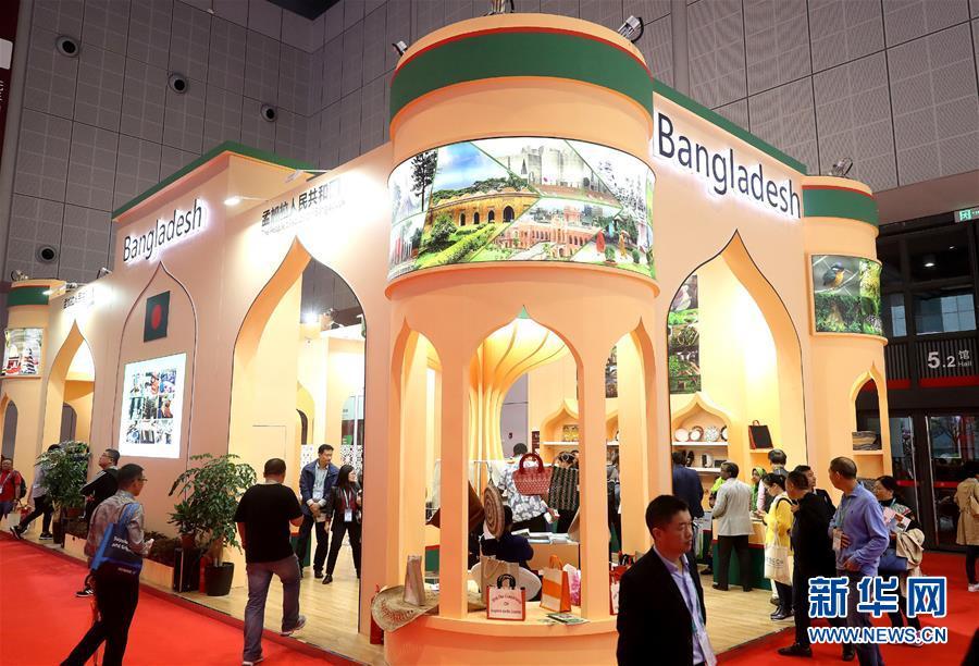 这是11月7日拍摄的孟加拉国展区。 中国国际进口博览会11月5日在上海开幕。国家贸易投资综合展(国家展)是中国国际进口博览会的重要内容,共有82个国家、3个国际组织设立71个展台。 新华社记者 陈飞 摄