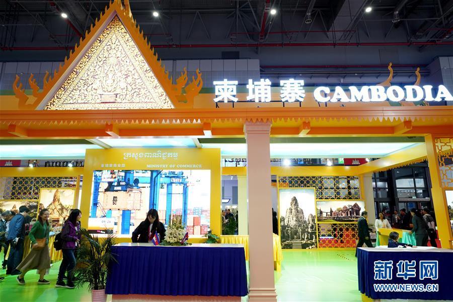 这是11月8日拍摄的进博会国家展柬埔寨展区。 中国国际进口博览会11月5日在上海开幕。国家贸易投资综合展(国家展)是中国国际进口博览会的重要内容,共有82个国家、3个国际组织设立71个展台。 新华社记者 程丽 摄