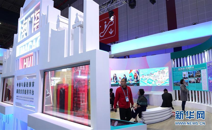 11月8日,人们在中国馆澳门展区参观。 中国国际进口博览会11月5日在上海开幕。国家贸易投资综合展(国家展)是中国国际进口博览会的重要内容,共有82个国家、3个国际组织设立71个展台。 新华社记者 程丽 摄