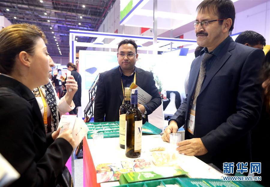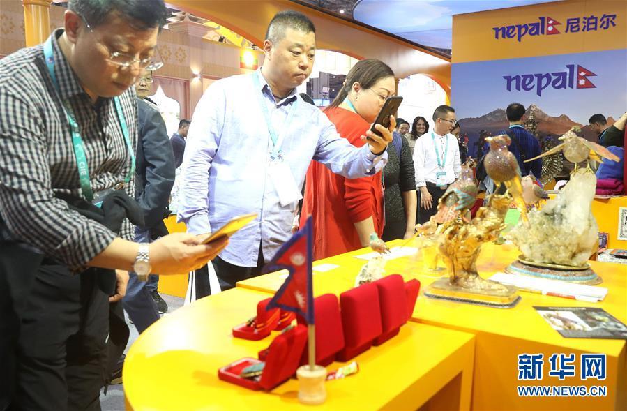 11月7日,人们在尼泊尔展区参观。 中国国际进口博览会11月5日在上海开幕。国家贸易投资综合展(国家展)是中国国际进口博览会的重要内容,共有82个国家、3个国际组织设立71个展台。 新华社记者 陈飞 摄