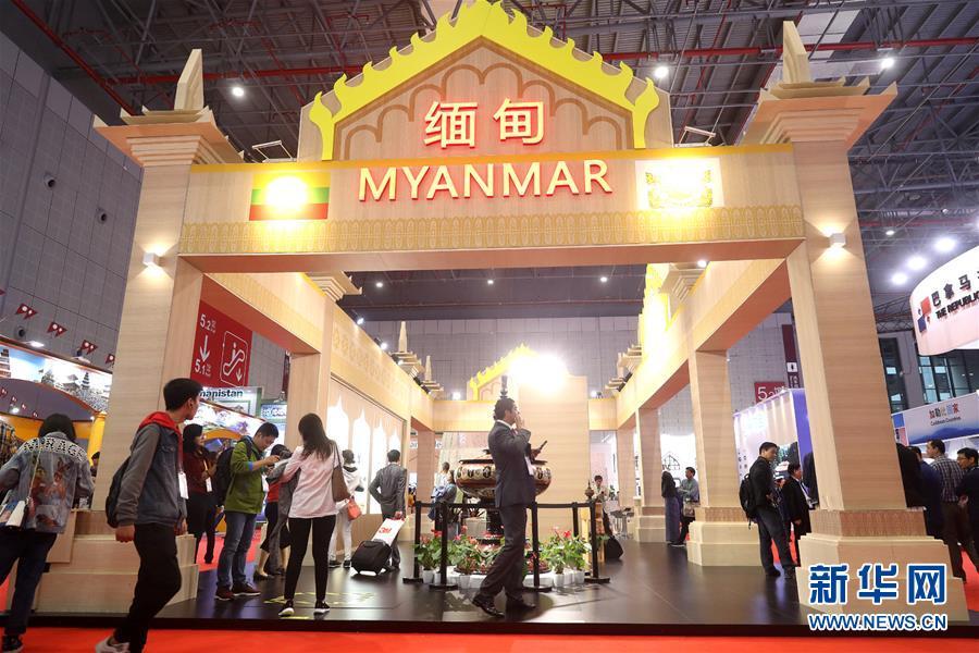 11月7日,人们在缅甸展区内参观。 中国国际进口博览会11月5日在上海开幕。国家贸易投资综合展(国家展)是中国国际进口博览会的重要内容,共有82个国家、3个国际组织设立71个展台。 新华社记者 陈飞 摄