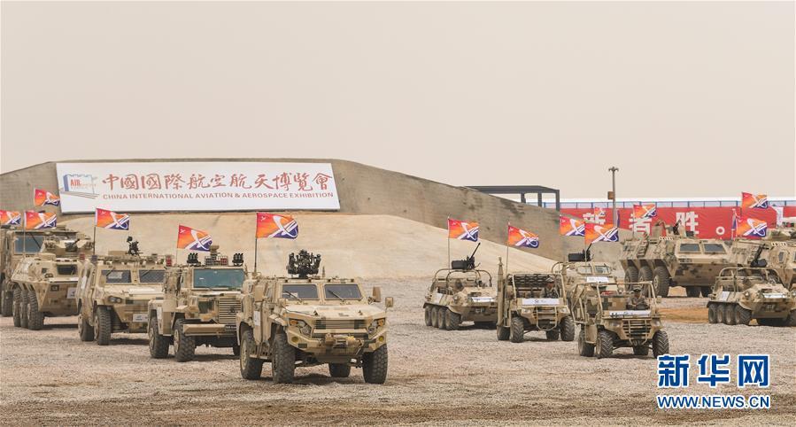 这是地面装备进行动态展示(11月8日摄)。 11月8日,在珠海举行的第十二届中国国际航空航天博览会上,中国兵器工业集团等企业为观众带来了震撼的地面装备动态展示。 新华社记者 邓华 摄