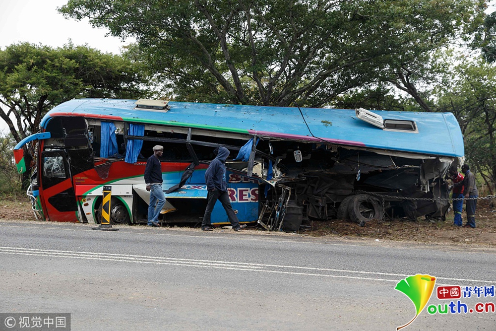当地时间2018年11月8日,津巴布韦鲁萨佩,津巴布韦警方7日表示,该国东部当天傍晚发生一起两辆大巴相撞事故,造成至少47人死亡。事故发生在东部马尼卡兰省鲁萨佩地区,两辆载有乘客的大巴迎面相撞,造成至少47人死亡,死者中包括45名成人和2名儿童。