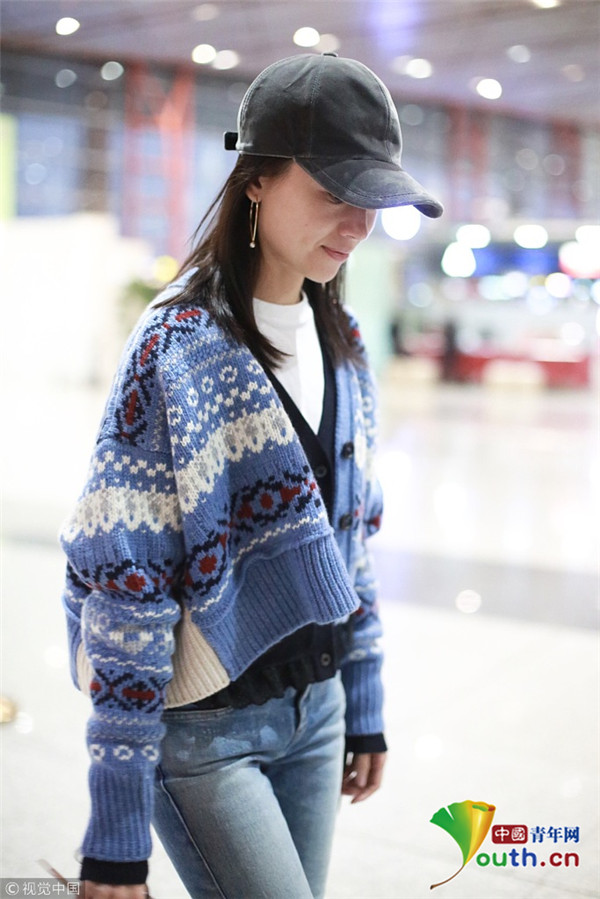 2018年11月8日,北京,“不老女神”董洁现身机场,虽然素面朝天依旧颜值超高,身高1米6也轻松拥有大长腿,身材比例超棒!